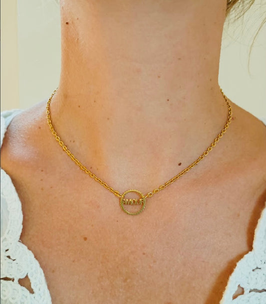 halsketting fijne schakel goud en tussenstuk amour