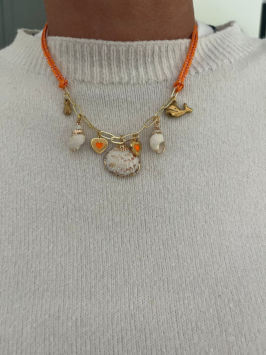 AanbiedingKetting met oranje koord en schelpen