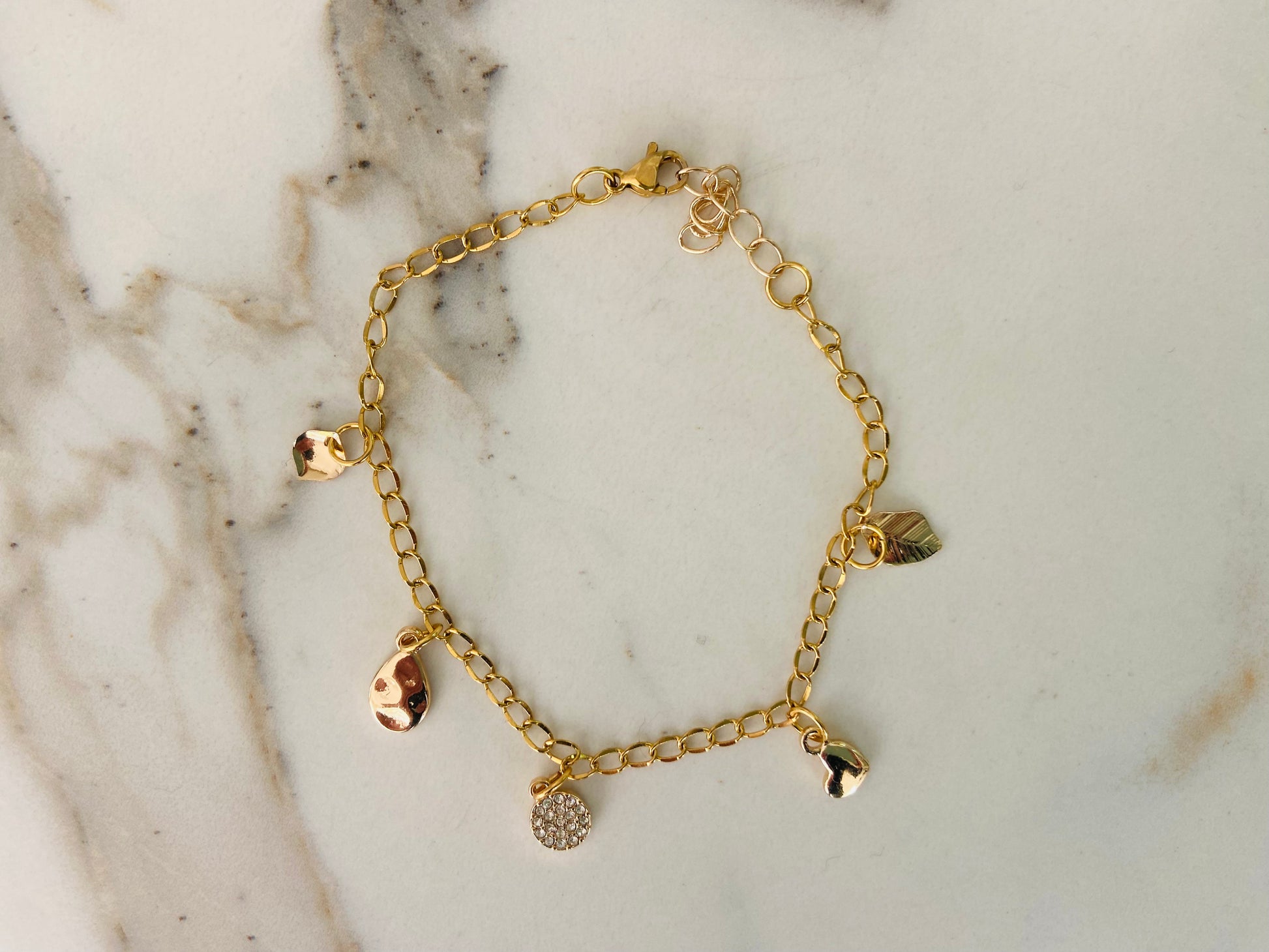 Armband goud met vijf fijne bedels
