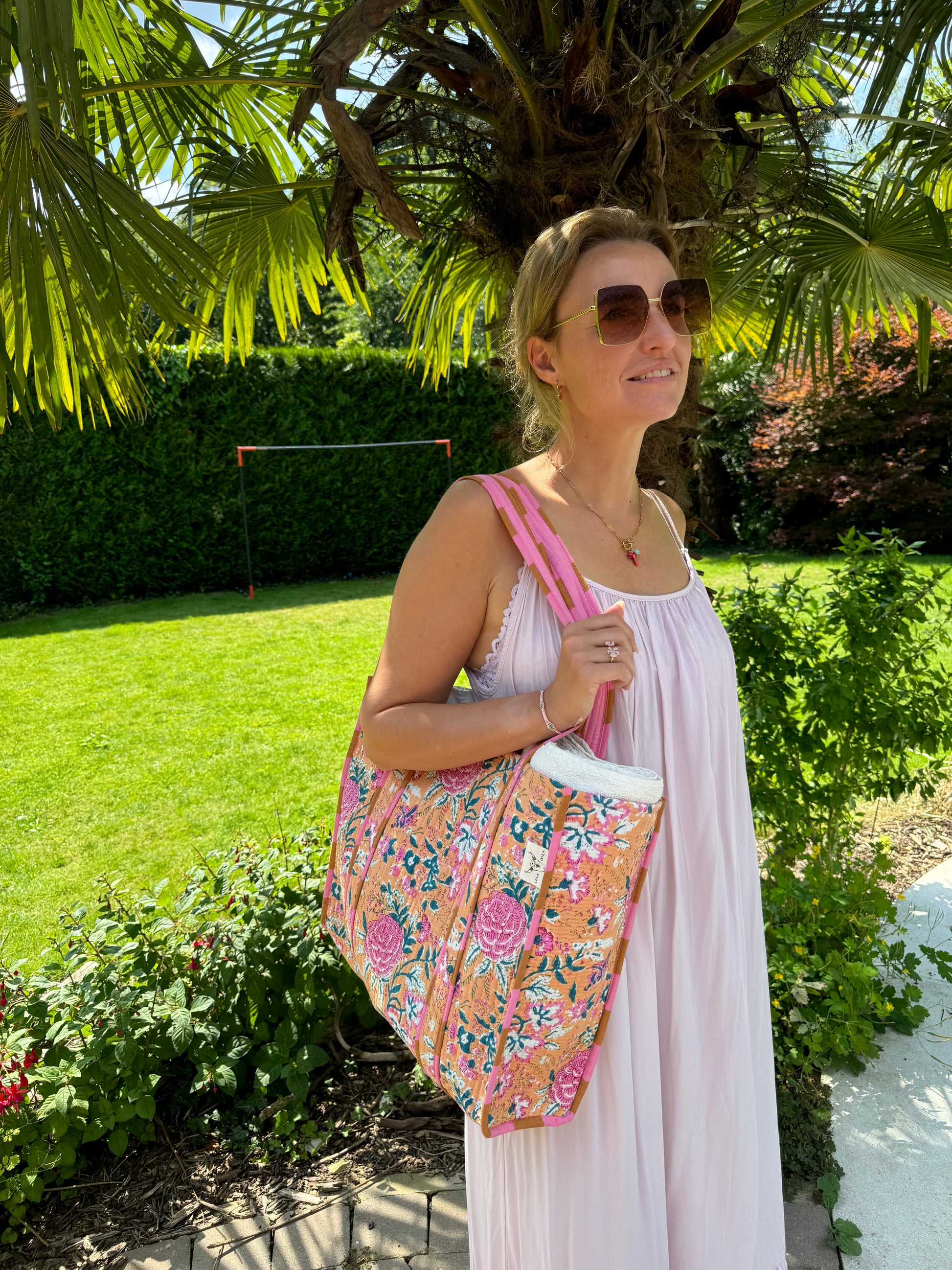 Blockprint schoudertas Peach pink