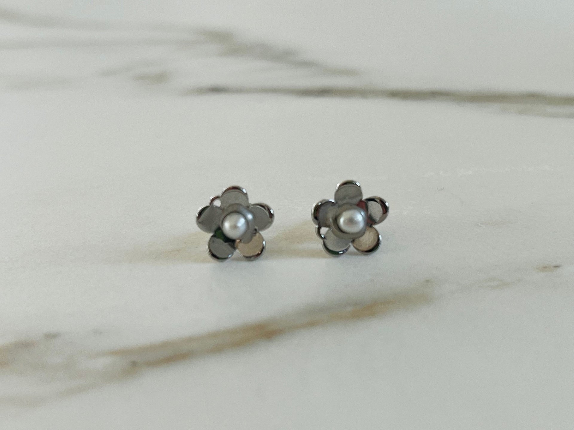 Oorbellen Daisy klein met parel zilver
